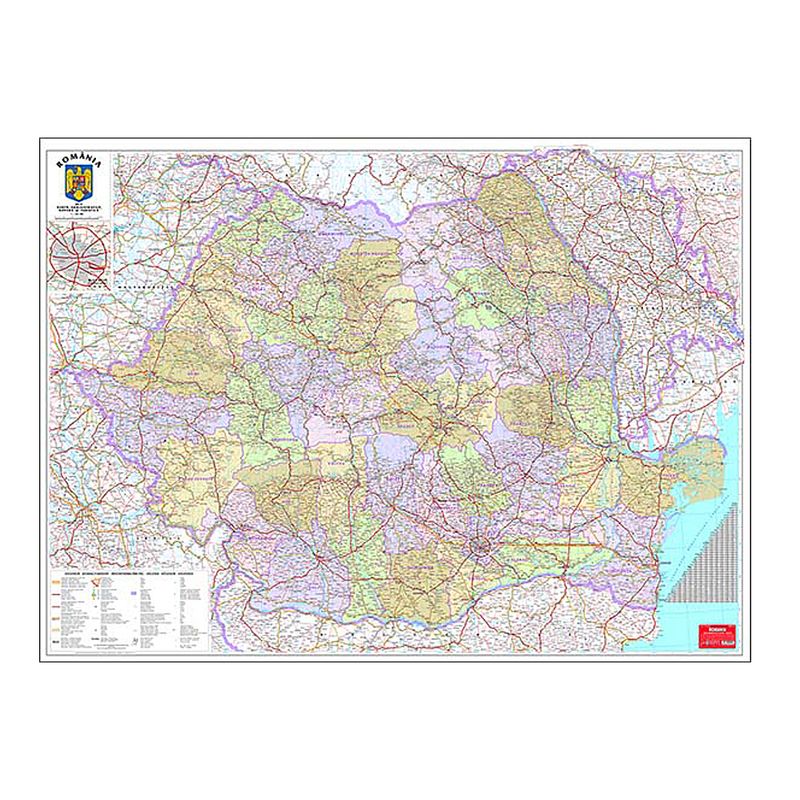 Harta Romania Administrativa 100 X 140 Cm Scara 1 570000
