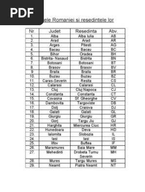 Judetele Romaniei Si Resedintele Lor