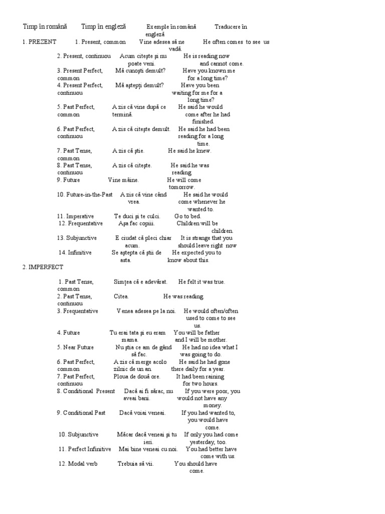 Timp In Romană Timp In Engleză Exemple In Romană Traducere In