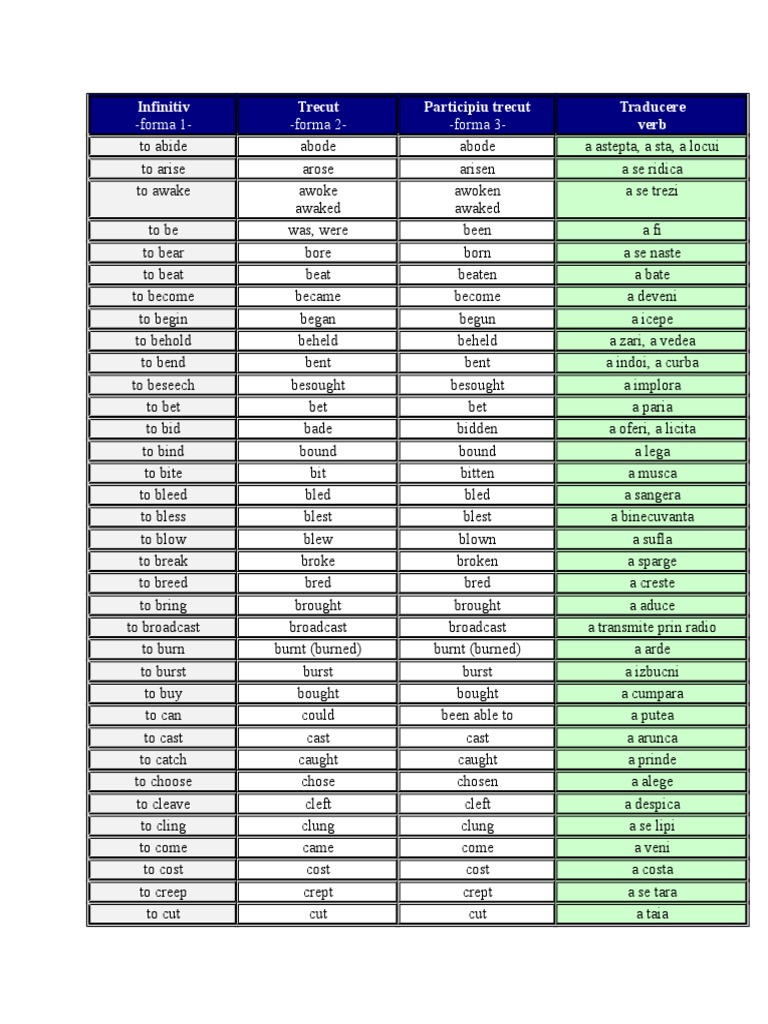 Lista Verbelor Neregulate Din Limba Engleza Beget Begot Begotten