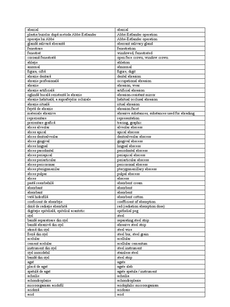 Glosar Stomatologie Roman Englez