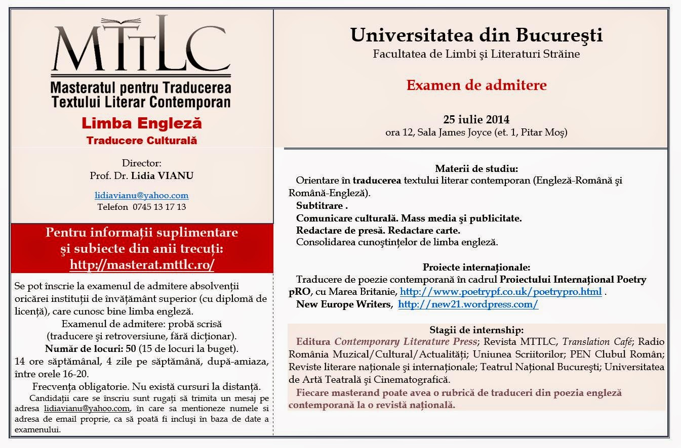 Masteratul Pentru Traducerea Textului Literar Contemporan