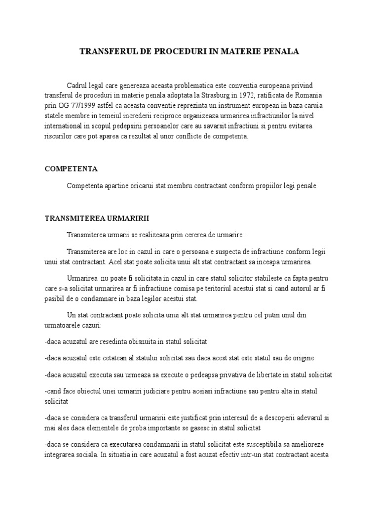 Transferul De Proceduri In Materie Penala