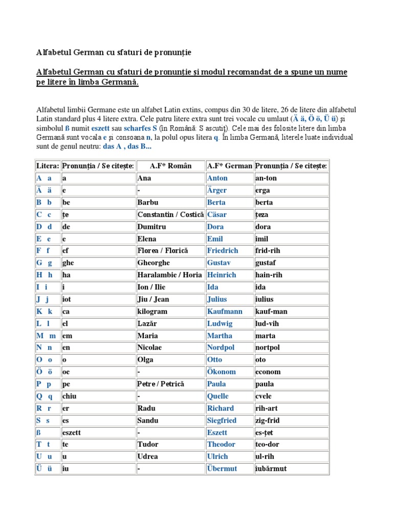 Alfabetul German Cu Sfaturi De Pronunţie