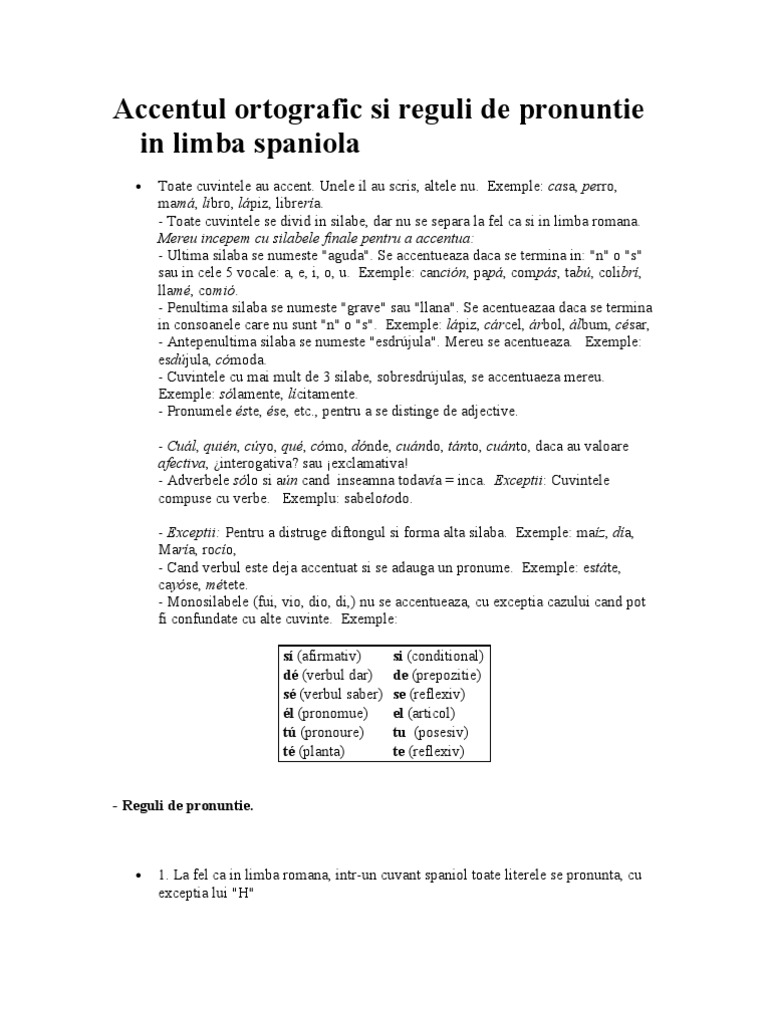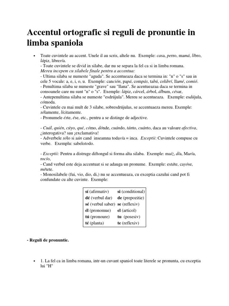 Accentul Ortografic Si Reguli De Pronuntie In Limba Spaniola